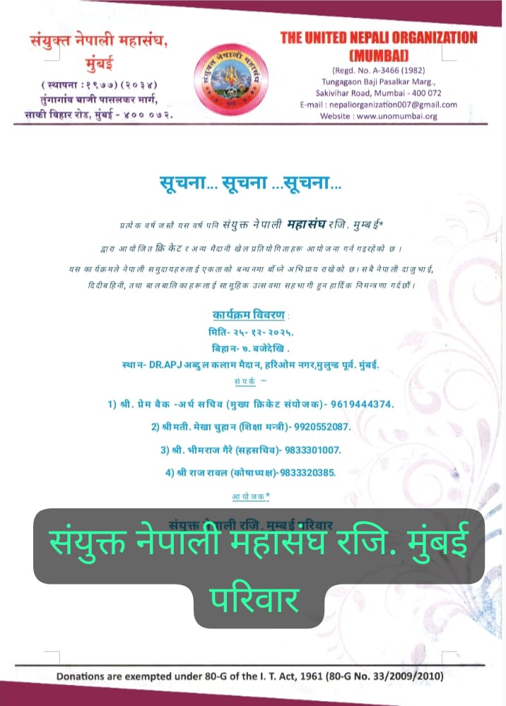 "The immigrated Nepalese are more than sixty lakhs in India. They work in different professions and earn their respectable livelihood. In Mumbai the capital of Maharashtra, there are more than two lakh Nepalese. The immigration was a fate accompli which dates back to centuries. There exist no official records, the Nepalese started coming to Mumbai way back since 1935.